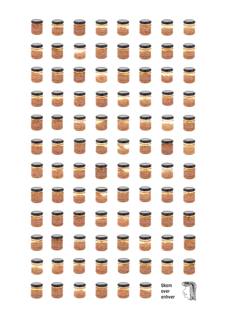 Efter performancen sidste år lagde kunstneren de 94 revne gulerødder på sylteglas og satte labels på med politikernes navne, så hver af de 94 politikere optræder som en syltet gulerod i et glas.